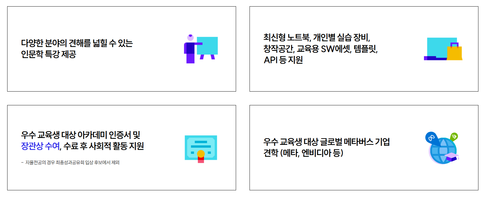 - 해외기업 방문 기회: 교육 기간이 끝나고 우수교육생들에 한해서 앤비디아나 메타 등 방문할 기회를 제공합니다.
